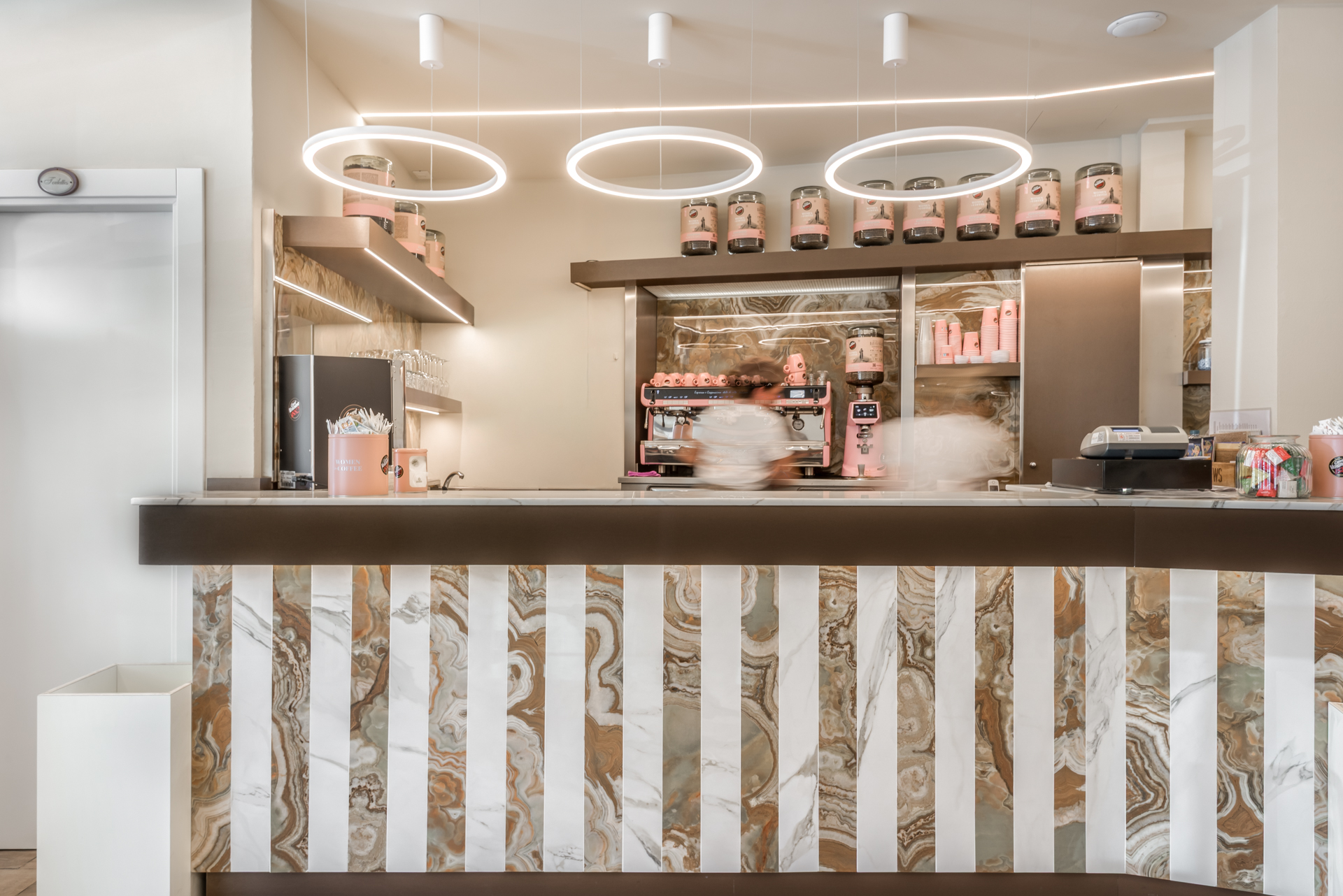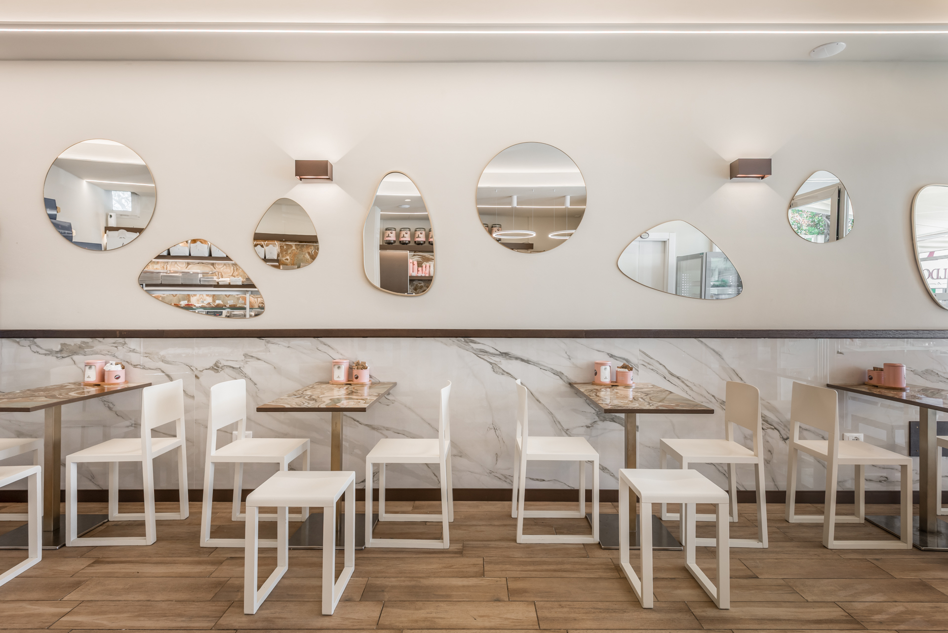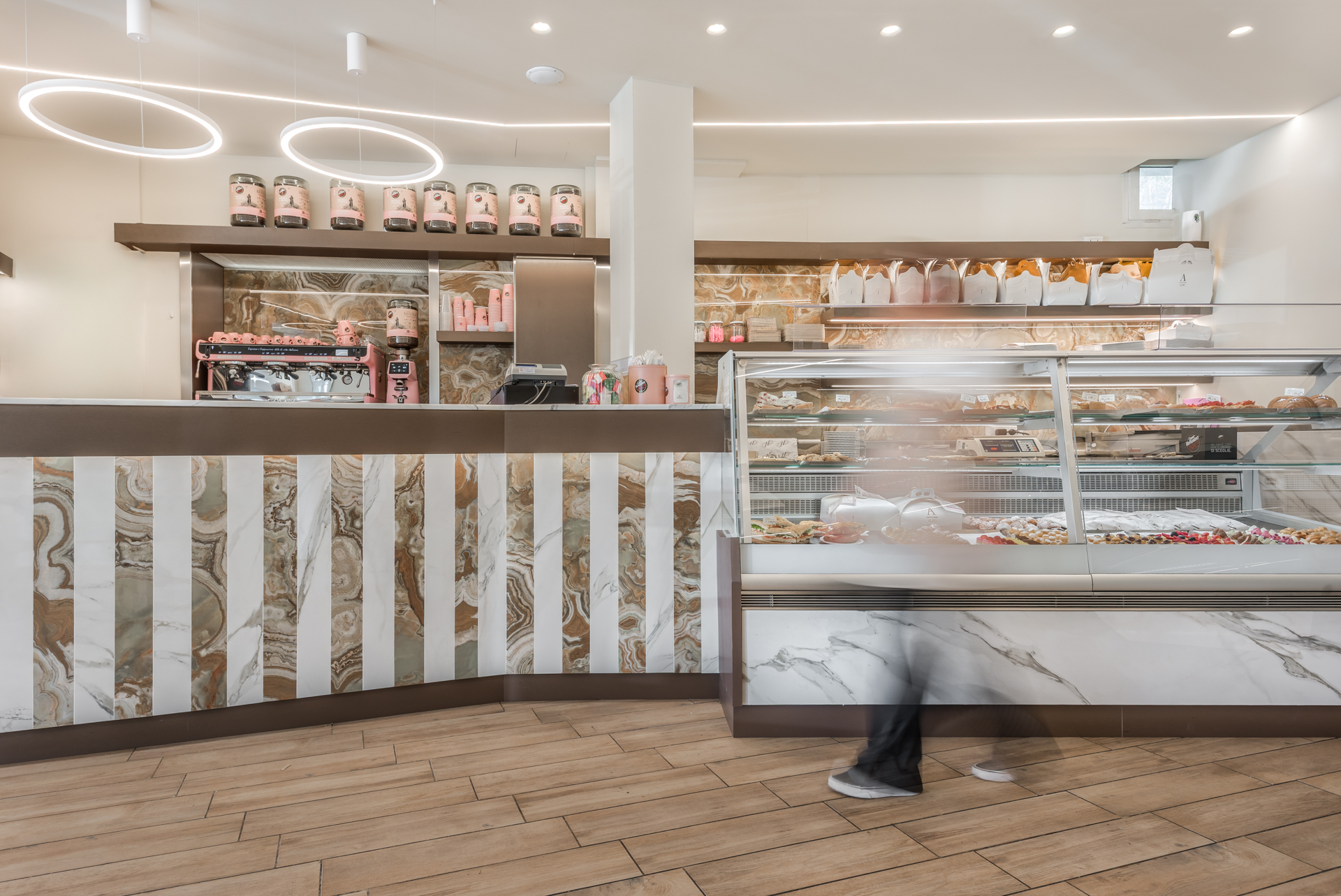 Un design che valorizza la tradizione artigianale della pasticceria, rendendo ogni dolce ancora più irresistibile, in uno spazio pensato per vivere un’esperienza unica fatta di gusto e bellezza.