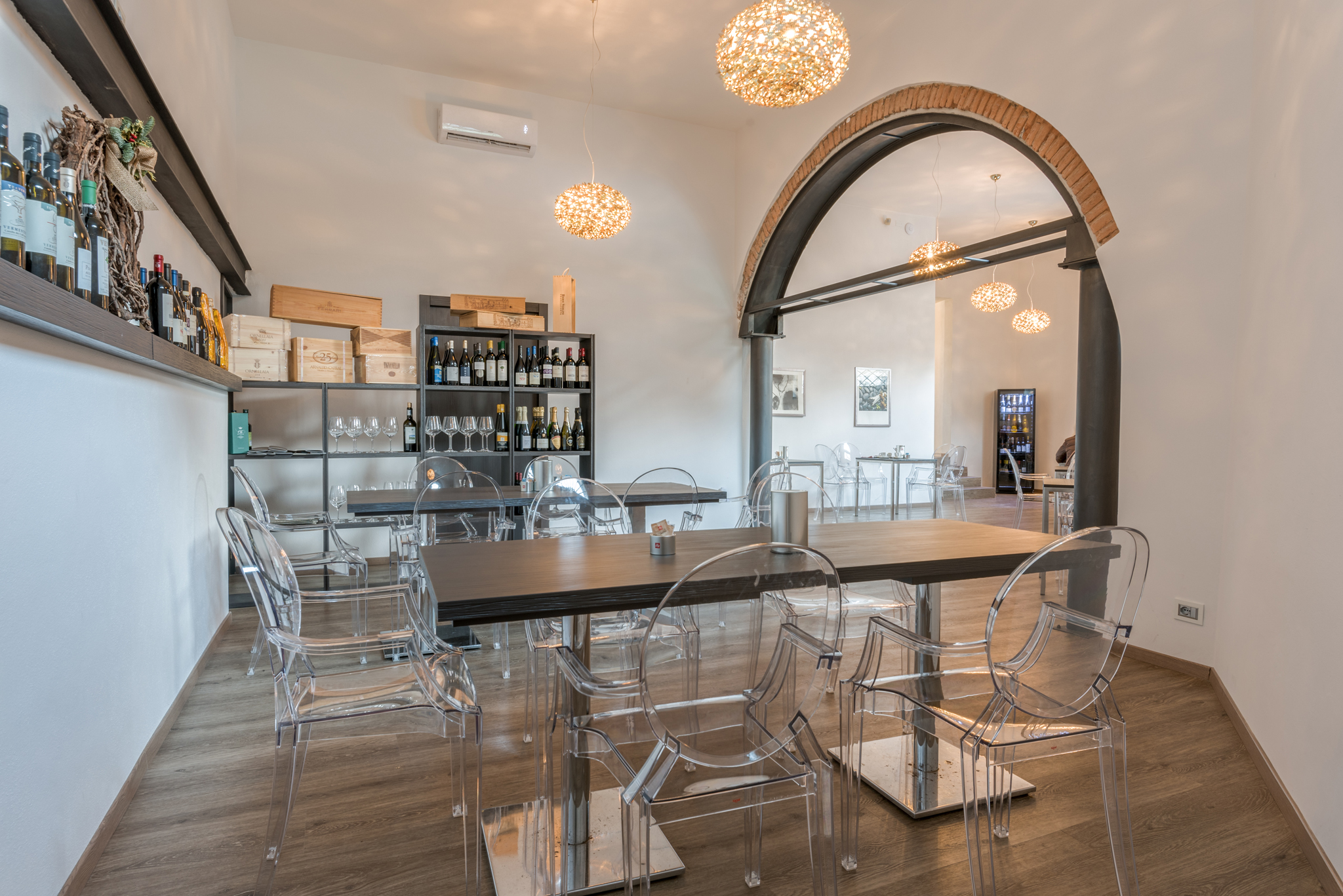 L’arredo dialoga direttamente con l’architettura del locale, esaltando la rusticità delle sue arcate e del soffitto di cotto e legno con un gioco di luci e levigatezza moderne proprie dal bancone principale. La lastra di marmo di altissima qualità di questa’ultimo si mostra elegante e raffinata in un continuo binomio tra tradizione e modernità. Gli spazi e le sedute sono gestite al meglio seguendo principi di confort, così come la postazione bar dotata di organizzazione e praticità.